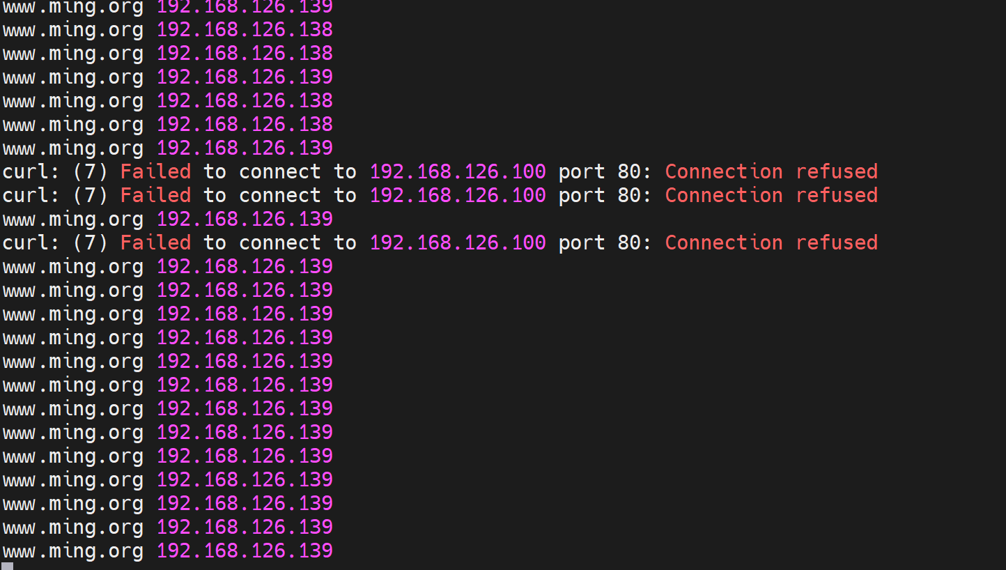 此时就不会再往故障节点192.168.126.138转发了,因为LVS的转发规则已经调整👇